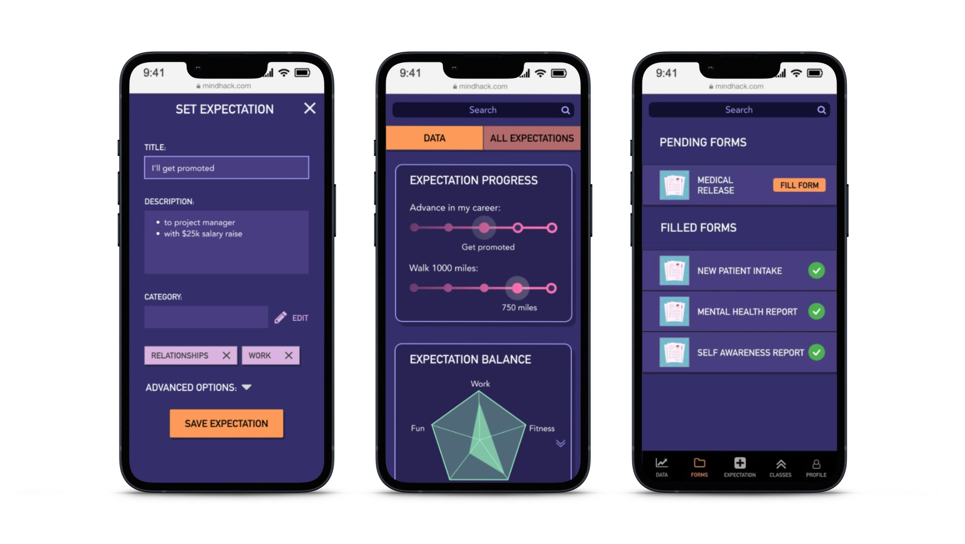 I designed Mindhack, a mental health self-awareness and goal setting app, to help people keep track of all their personal data in one place, see trends over time, more effectively manage their mental health, and set goals in a fun and easy way.