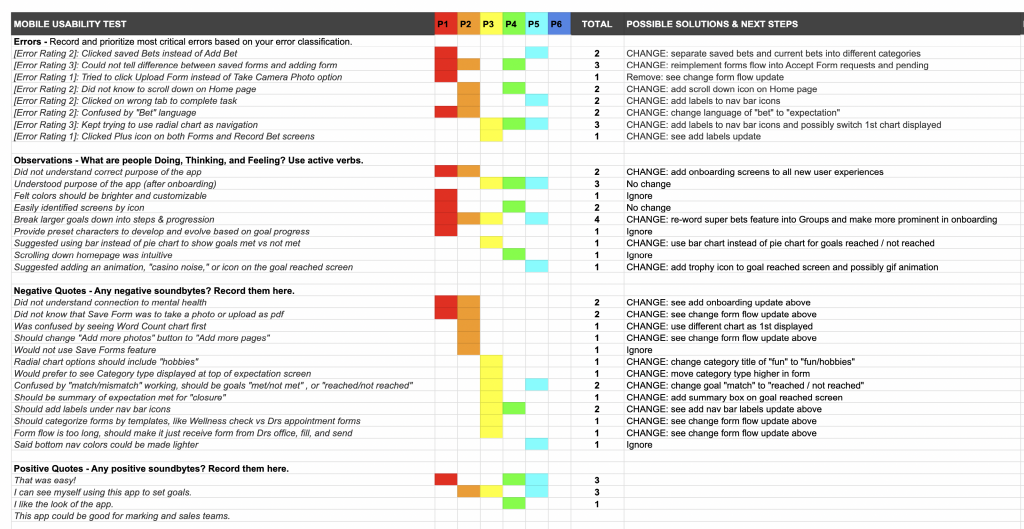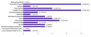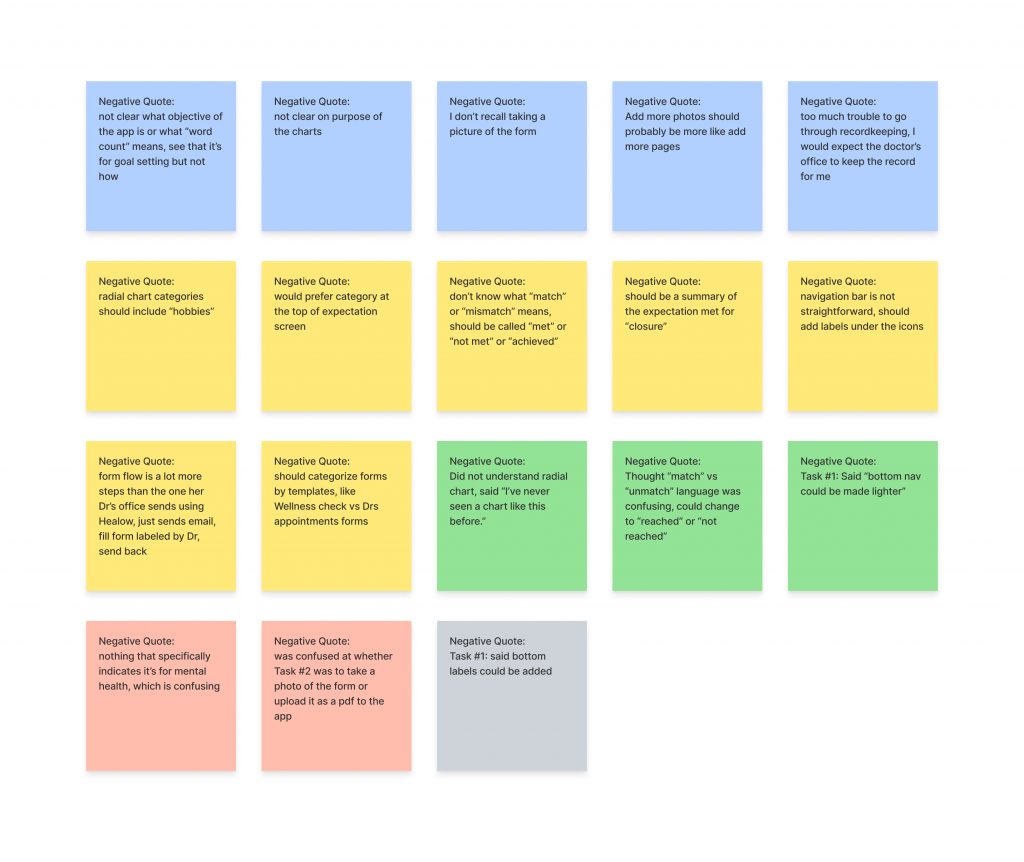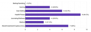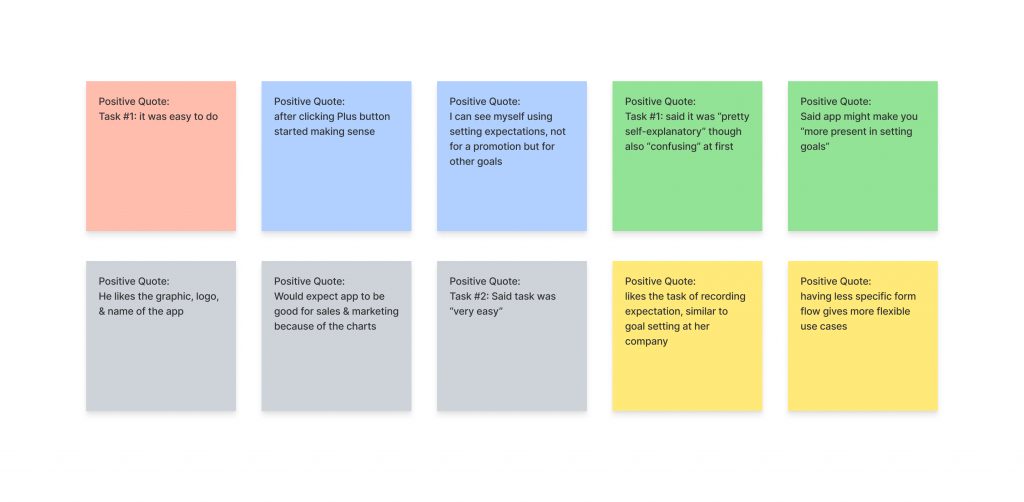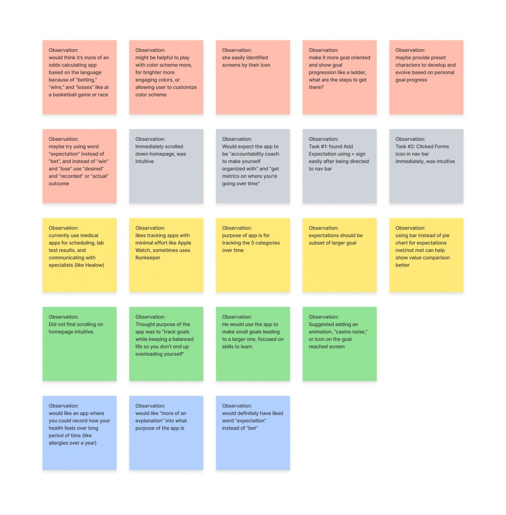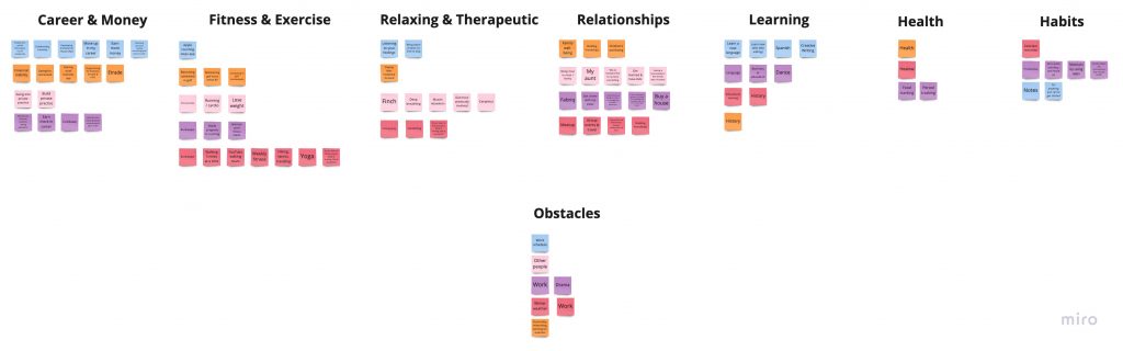 Participant responses suggest that good mental health is related to several factors, including professional achievement, personal fitness, good habits, and stable relationships, which I used for the app’s default goal categories.