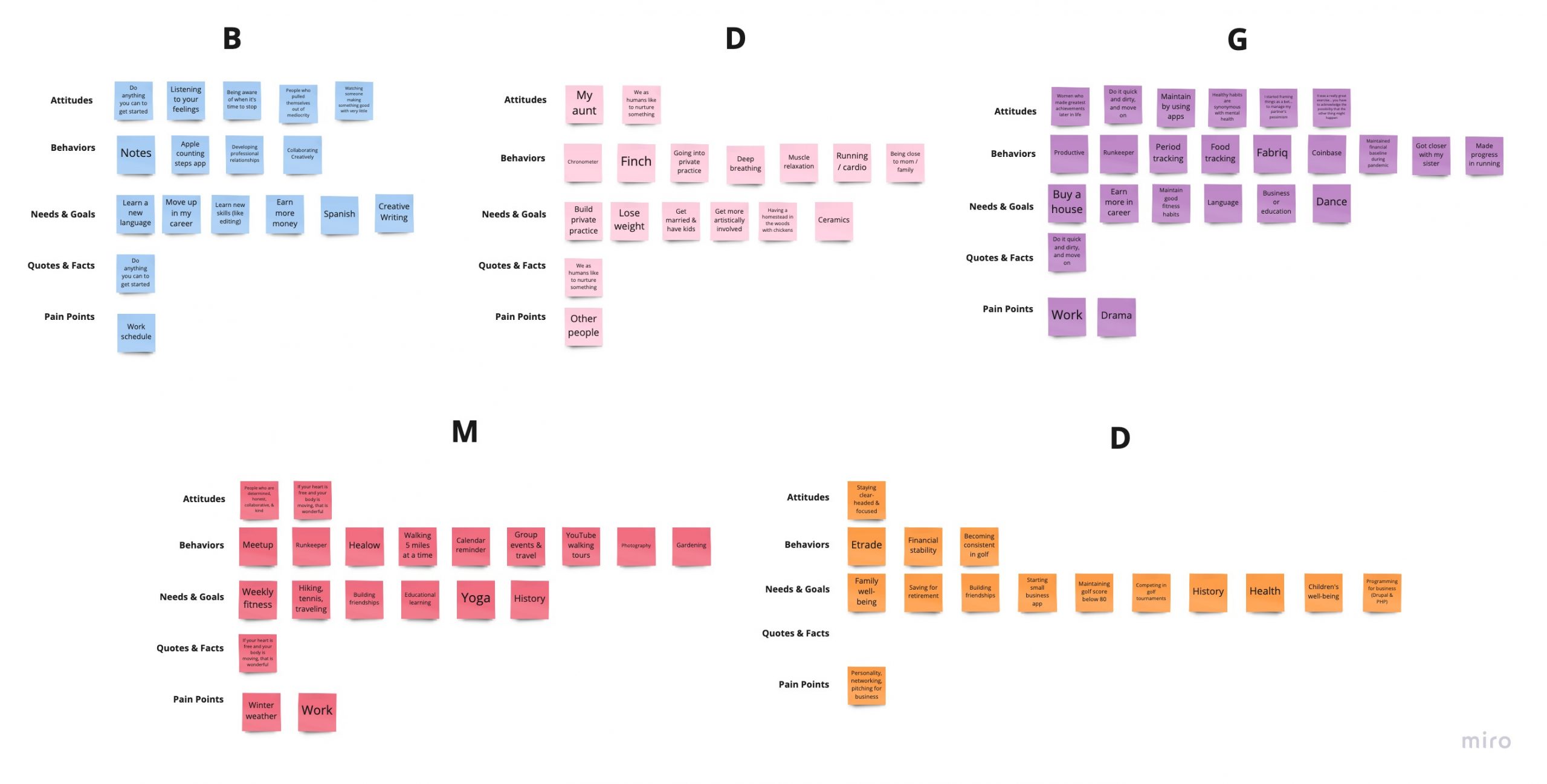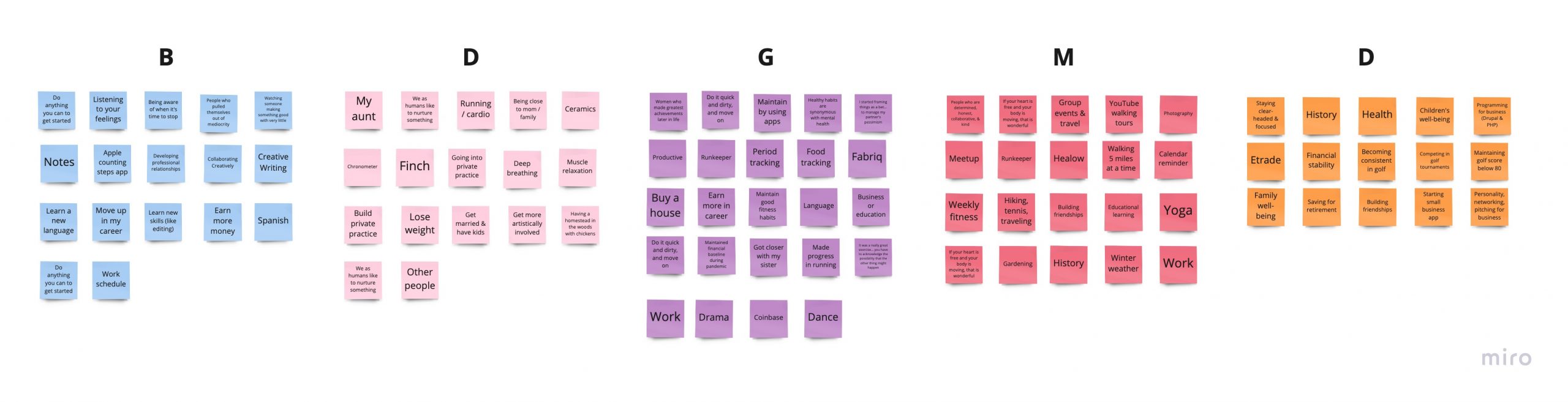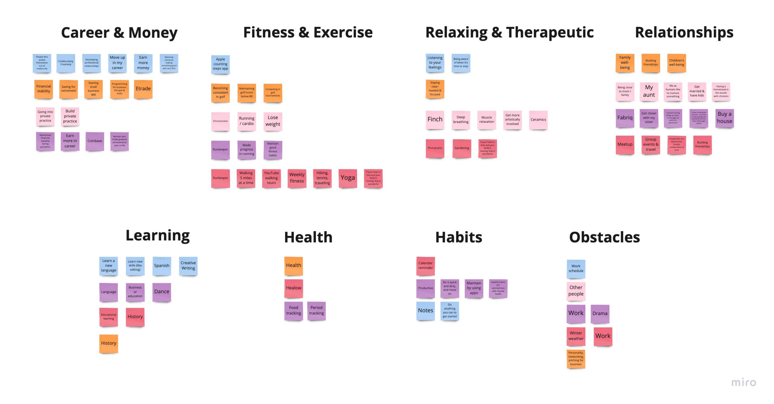 Commonly mentioned goals included making more money, building good fitness habits, developing self-awareness and mental focus, and building relationships, which I used to develop an ad campaign for the app.