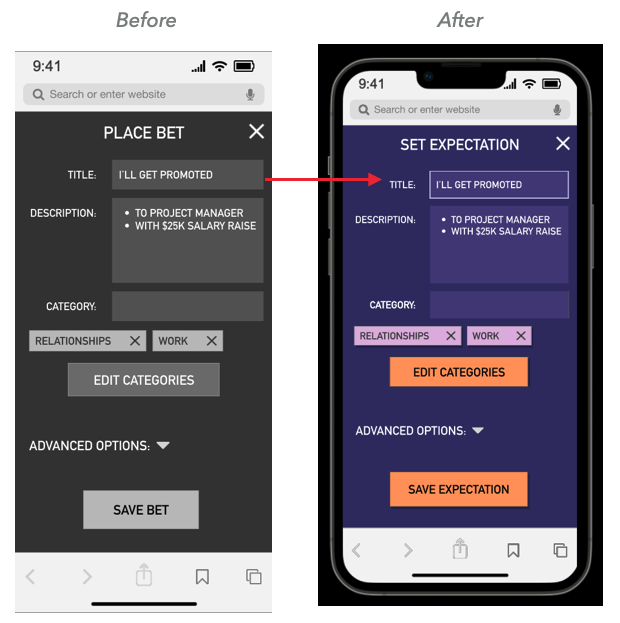 I found the easiest way to convey the app concept to new users was to mention “goal-setting” as a feature. The app then shifted towards being primarily a “mental health goal-setting app.”